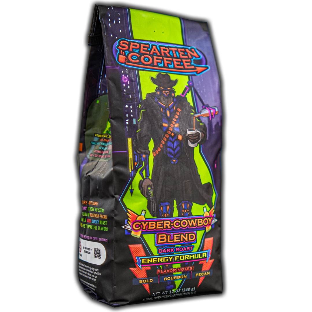 Cyber-Cowboy is a thrilling, bourbon-pecan coffee masterpiece. Kicking Texas into high gear, this coffee is infused with our staple energy formula, a combination of cognitive boosters and energy supplements helping you focus without crashes! Featuring Dark Roast Honduran Beans, 12oz Bag Size (22-24 cups)